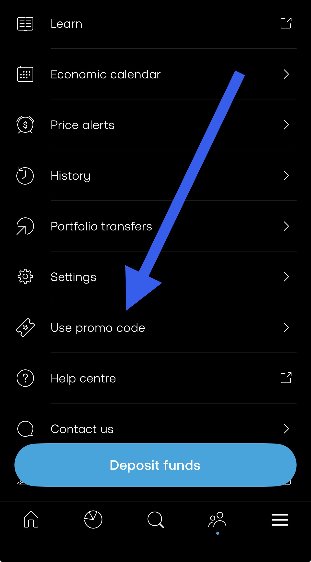 - Tap your profile icon and find "Promo Code" in the menu